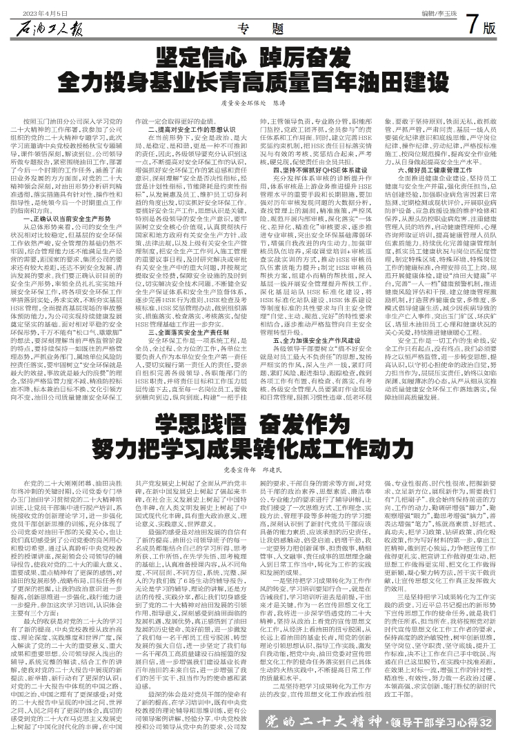 坚定信心 踔厉奋发 全力投身基业长青高质量百年油田建设