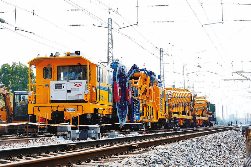 10月9日,2025年京沪、西陇海线第二阶段集中修陆续拉开序幕,徐州工务段优化施工组织,加强把关盯控和安全隐患排查整治,严把质量关口,确保安全、高效完成集中修施工任务。图为CQS-300K侧切式清筛机首次在京沪线进行道岔清筛作业。