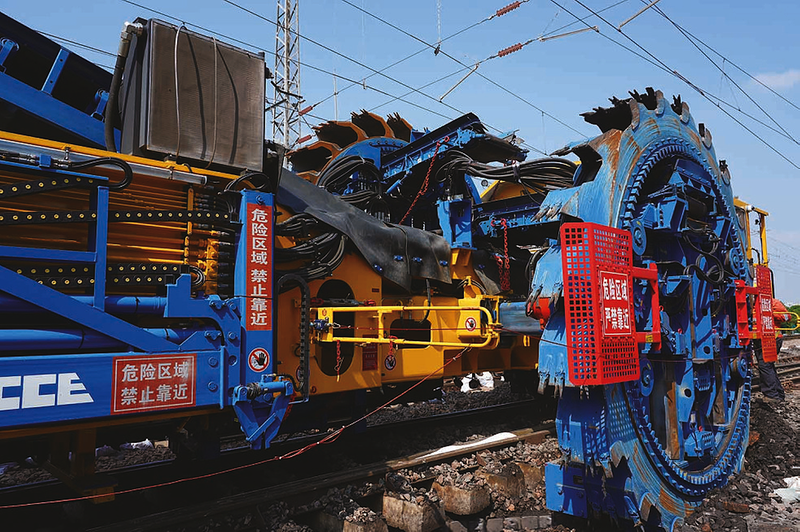 CQS-300K侧切式清筛机首次亮相京沪线道岔清筛作业