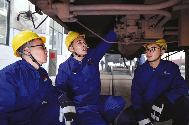 在南京东车辆段徐州北检修车间外制动班组,1978年出生的党员王继刚、1990年出生的党员孙超、2002年出生的团员张尧尧,三位生肖属马的铁路人组成“三马师徒组”。他们以党员为先锋、团员为骨干,将党性传承与匠心坚守深度融合,三代人薪火相传、并肩作战,扎根春运检修最前沿,在方寸车底间精检细修,彰显了货车检修一线党团引领、薪火不息的责任与担当。