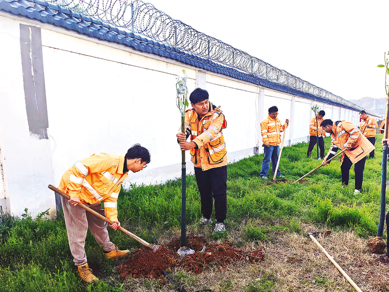 植树节来临之际,宁波工务段组织职工开展植树活动,美化环境,扮靓“家园”。 (通讯员 过海伦 摄)