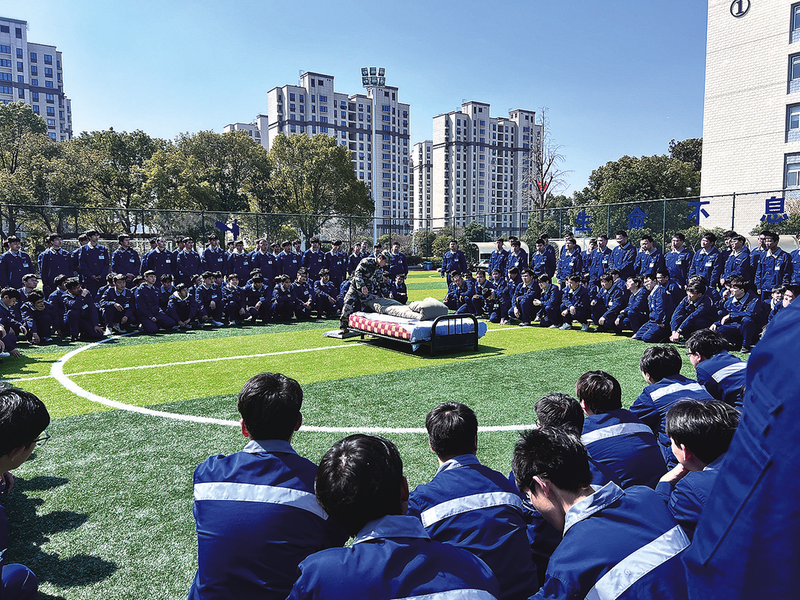 近日,上海动车段迎来230名“2+1”实习生。为帮助实习生尽快适应新环境,该段多部门联动,扎实推进接收服务保障工作。图为该段组织实习生开展军训。