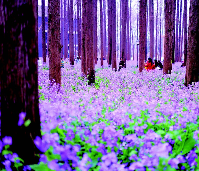 不知从何时起,这片二月兰已成为南京春日的“网红”,每年来南京理工大学打卡看花的人渐渐多了起来。浅色系的衣裙缀在紫色花海里,相机快门声与轻声笑语交织,为这片静谧的花海添了几分烟火气。有人举着相机,定格花与人交融的温柔瞬间;有人循着花香漫步,任春风拂过发梢、衣角;也有像我一样的游者,在花海间缓缓踱步。