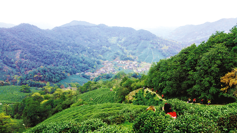 这里没有西湖边的人潮涌动,而是多了一份静谧温润。远山秀丽,将江南的美好藏在每一缕春风里。茶田里冒出的一片片新芽,一垄垄顺着山势铺展,宛如绿毯轻扬。茶叶的清冽之气扑面而来,沁人心脾,让我和家人沉醉其间。