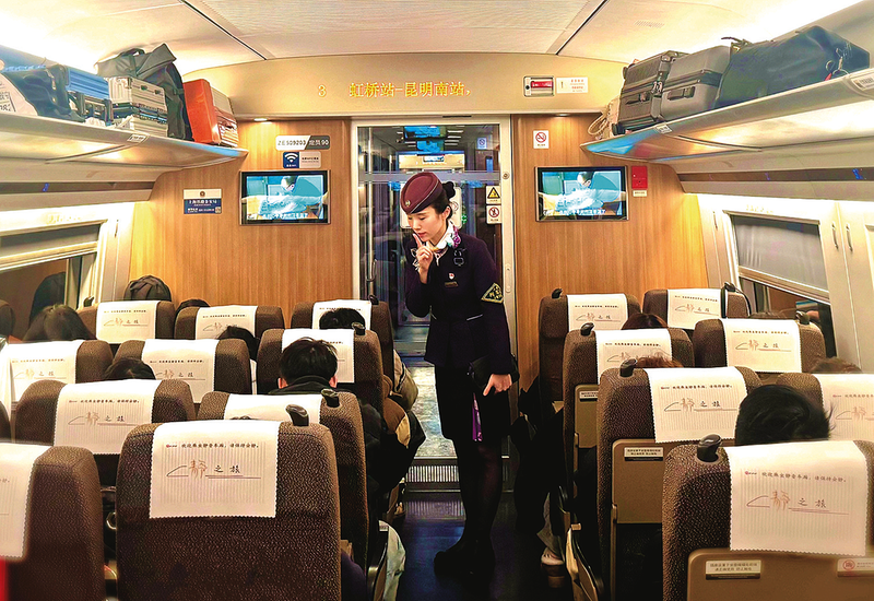乘务员提醒旅客保持安静 4月9日,走进G201次列车的静音车厢,不少旅客正在午休。上海客运段高铁二车队乘务员卢妮全程提供“轻声”服务,轻推服务小车,放缓步伐。列车长祝佳佳巡视车厢时脚步轻盈,遇到旅客交谈声音过高时,她便上前举牌,温和有礼地提醒。她们用耐心、细致的服务,与旅客共同营造静音车厢的宁静氛围。
