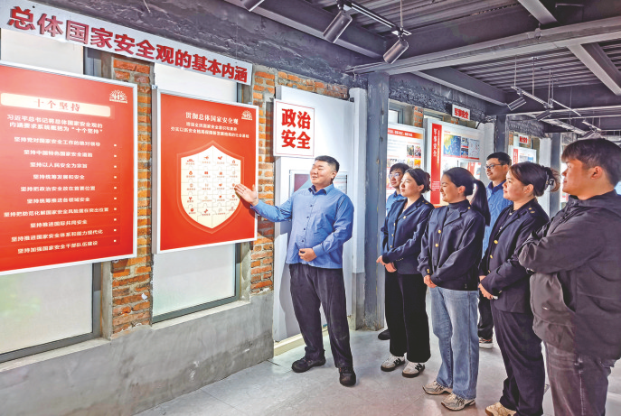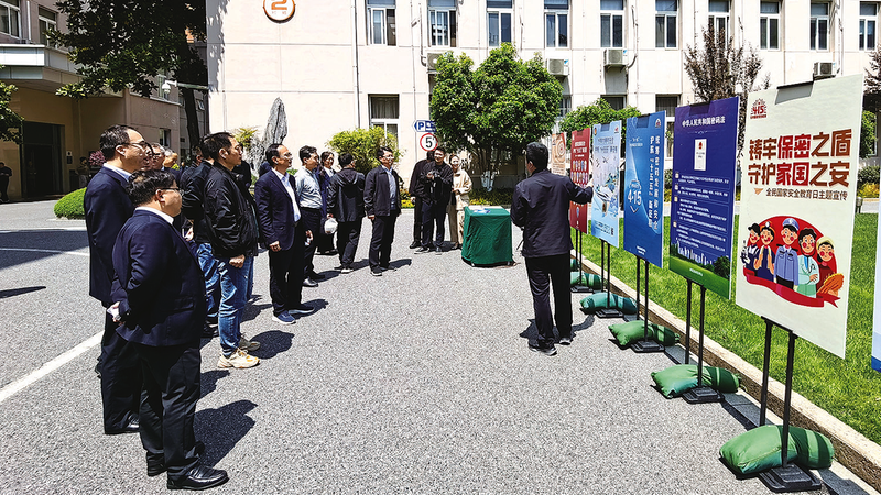 集团公司办公室(保密办)紧紧围绕“统筹发展和安全,护航‘十五五’新征程”主题,运用线上线下多种载体,广泛开展“4·15”全民国家安全教育日活动,引导各级干部增强国家安全意识,自觉贯彻落实总体国家安全观。图为机关干部在观看主题宣传展板。 (记者 虞明 摄)